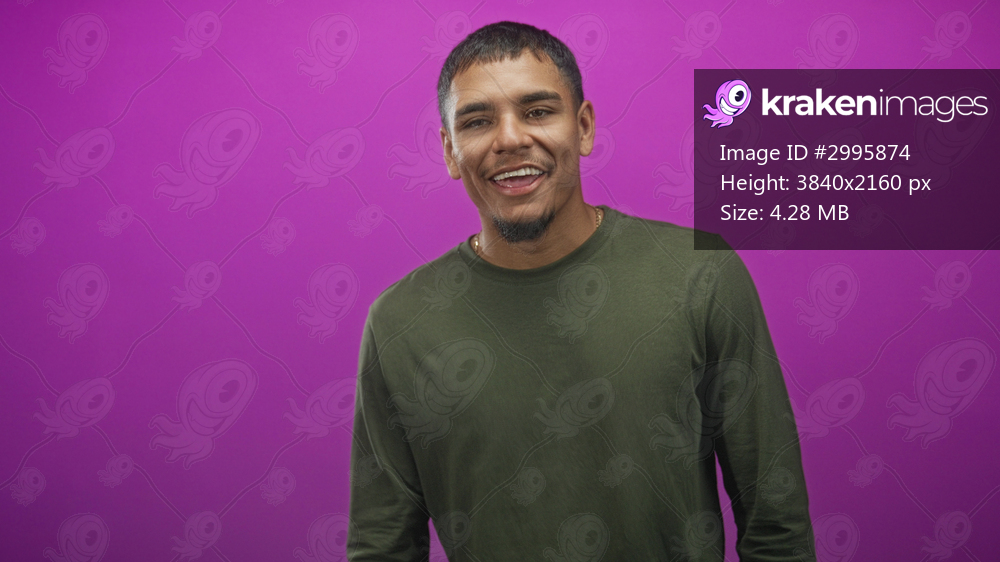 Man in green shirt cupping hand to mouth and shouting toward camera in studio with purple backdrop and studio lighting; joyful energy.