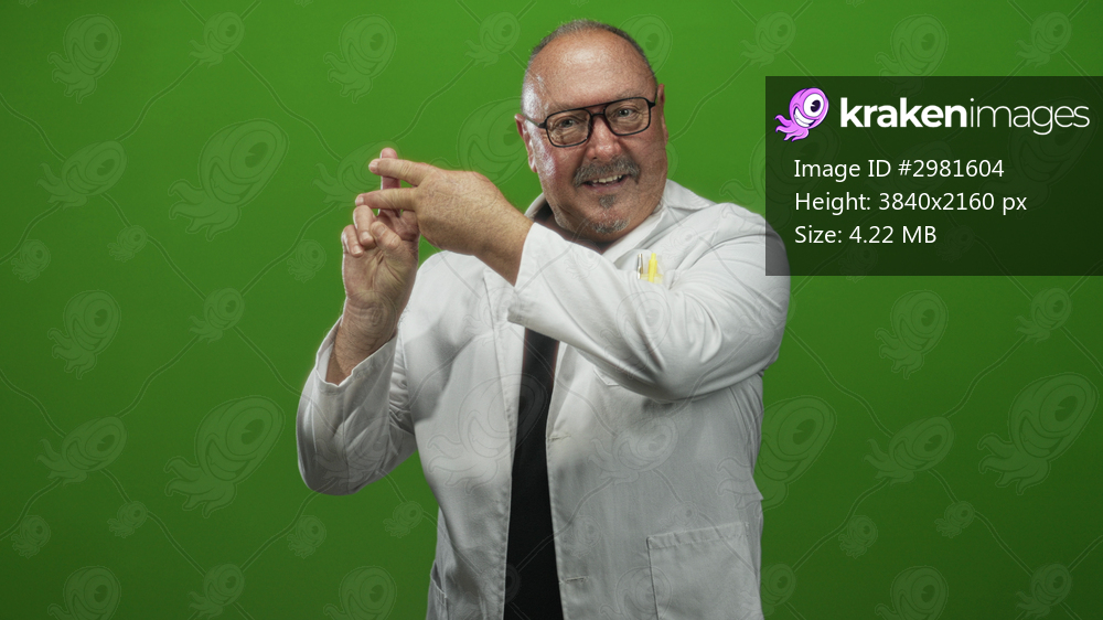 Man in white coat counting fingers in studio, smiling with glasses and pens visible in pocket while gesturing with hands; instructional teaching.