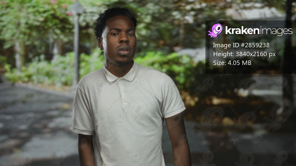 Man in white polo gestures with open hands and looks aside on city street pavement in broad daylight; uncertainty.