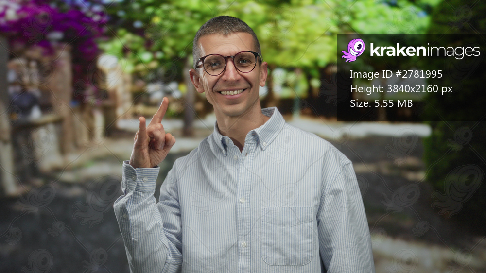 Man making rock gesture and sticking out tongue on a sunny street, wearing glasses and striped shirt with trees in the background, capturing a fun, quirky outdoor moment. - Kraken Images