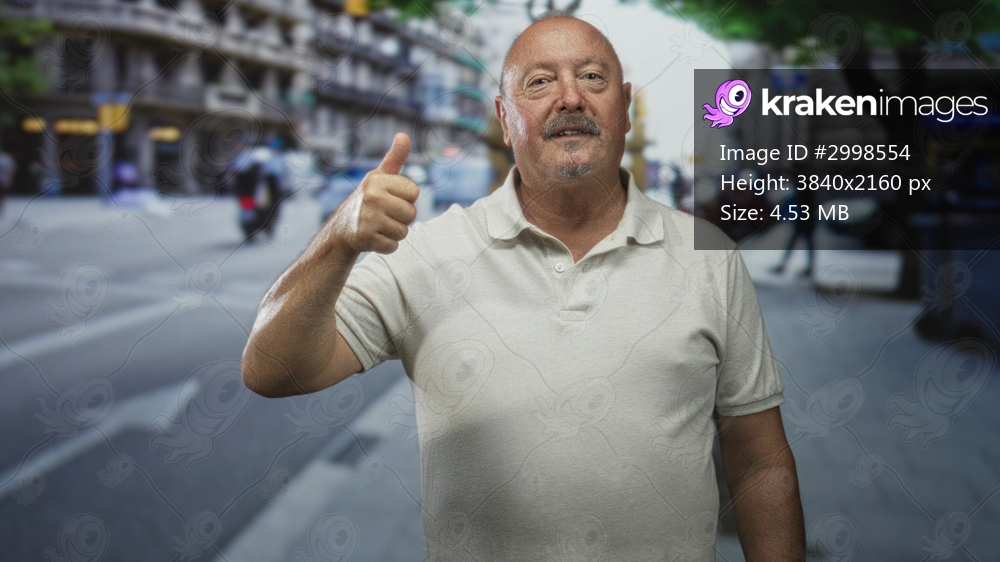 Man points finger to chest on busy city street near sidewalks, cars and storefronts while wearing a light polo shirt; self identity confidence.