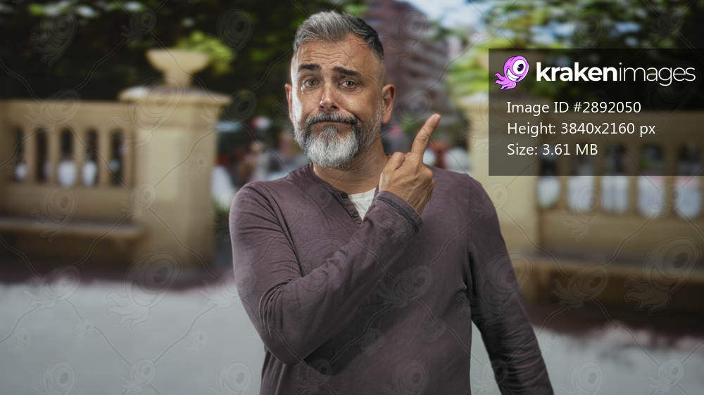 Man points finger to house entrance at building doorway with raised hand and slight shrug, visible finger and palm; doubt hesitation.