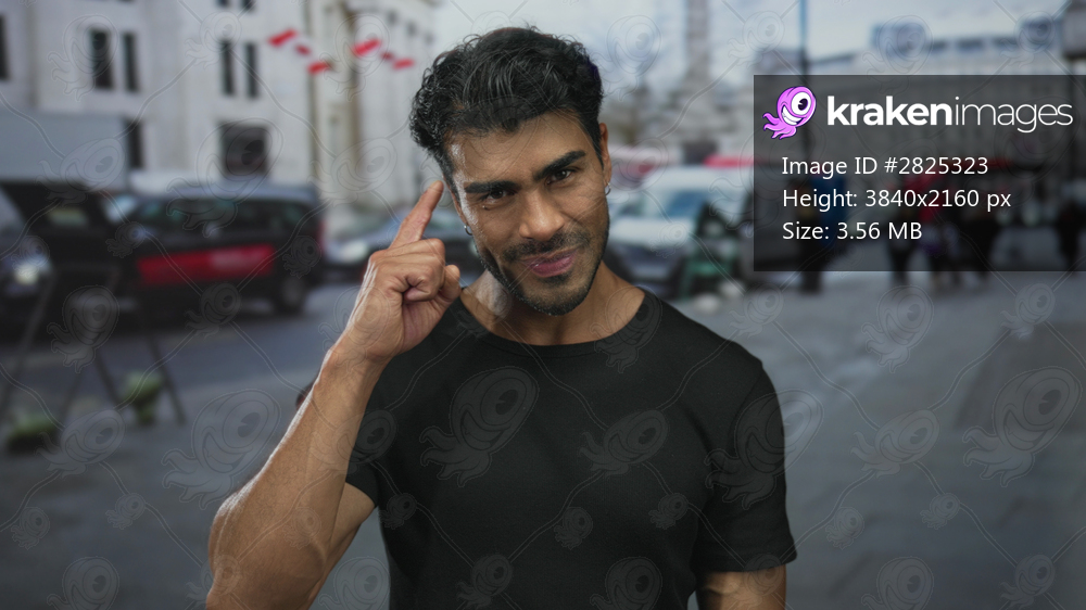 Man showing face and smiling while standing on a busy city street; confidence optimism positivity energy.