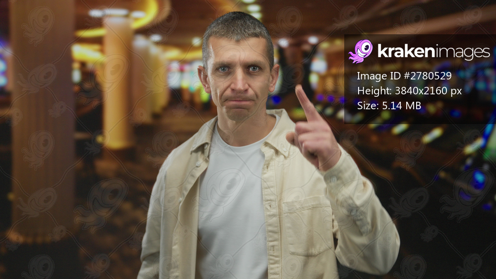 Man standing confidently in a vibrant casino environment, surrounded by slot machines, showcasing a casual yet focused demeanor as he engages with the bustling gambling scene. - Kraken Images