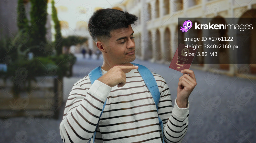 Man standing outdoors in a city street holding a chinese passport while contemplating it thoughtfully, emphasizing the importance of travel and identification. - Kraken Images