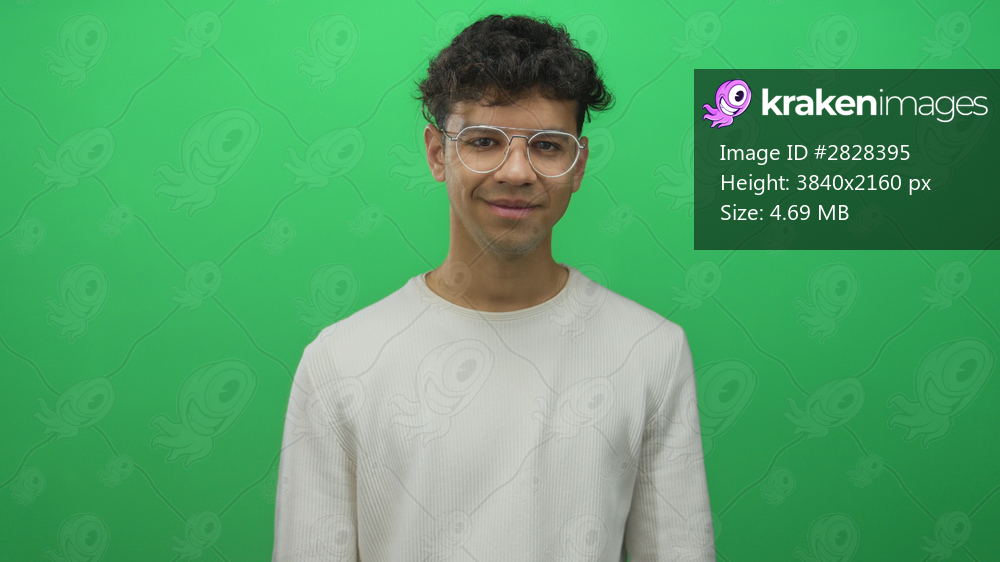 Man wearing glasses facing camera and smiling shows ok sign with hand in a bright green studio; approval.