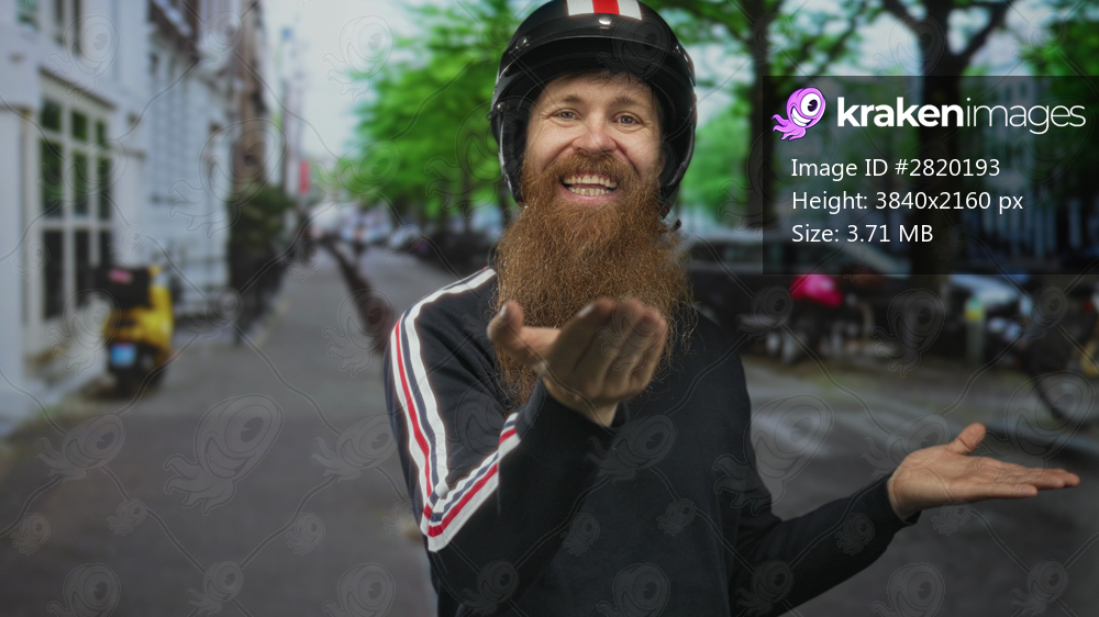 Man wearing helmet holds hands out on busy city street lined with parked cars and trees under summer light; curiosity wonder inquiry exploration.