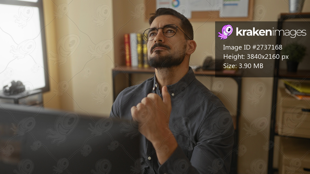 Man working in modern office setting, looking focused and engaged on computer screen with charts on the wall and plants visible, reflecting professional work environment. - Kraken Images