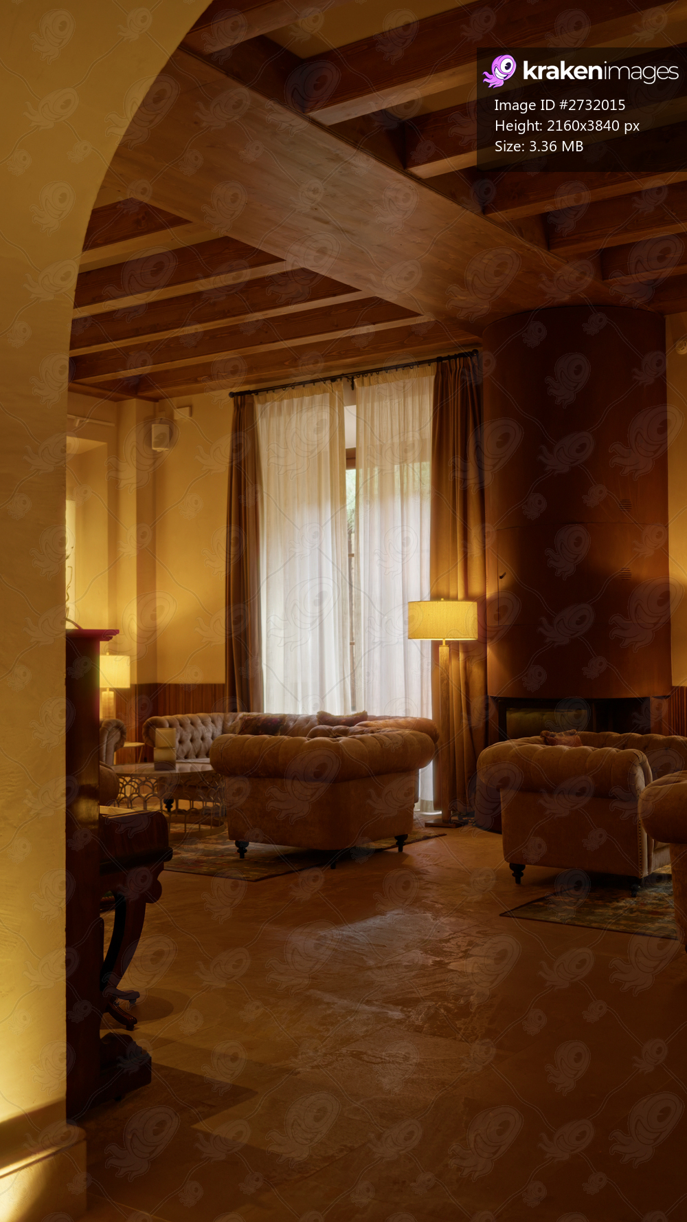 Mediterranean restaurant with rustic decor featuring plush sofas, warm lighting, wooden accents, and a cozy atmosphere ideal for dining and relaxation. - Kraken Images