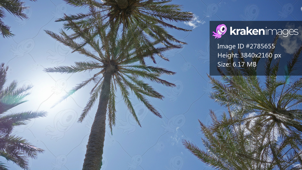 Palm trees swaying under bright sun in clear blue sky, capturing the essence of a sunny mediterranean day in torrevieja, spain.
