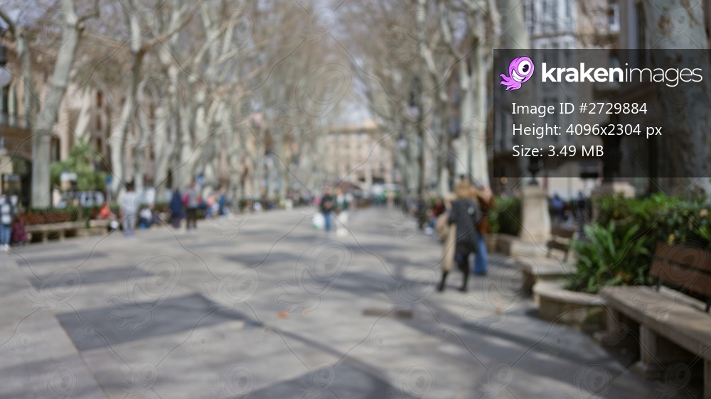 People walking along a sunlit european town street with blurred backgrounds, showcasing defocused architecture and bokeh effect in a bustling community setting. - Kraken Images
