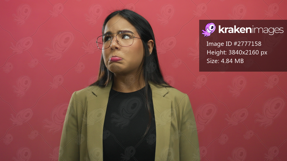 Portrait of woman with face sad in a background showcasing her young latin hispanic identity isolated by a red wall.