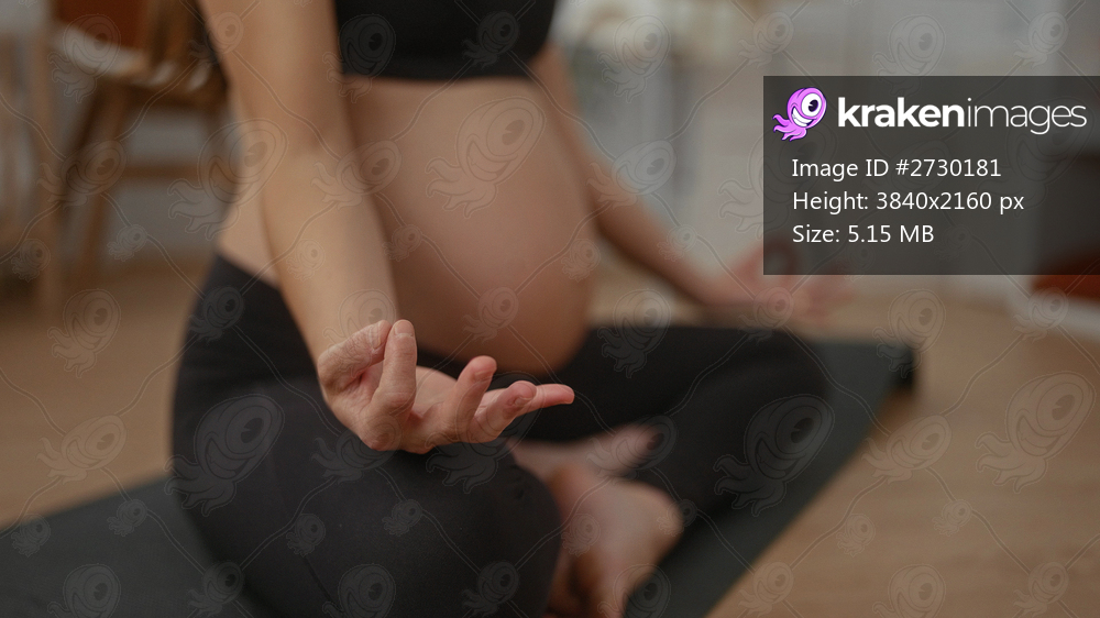 Pregnant woman practices yoga on mat in bedroom with crib visible, focusing on relaxation and mindfulness in a serene domestic setting.