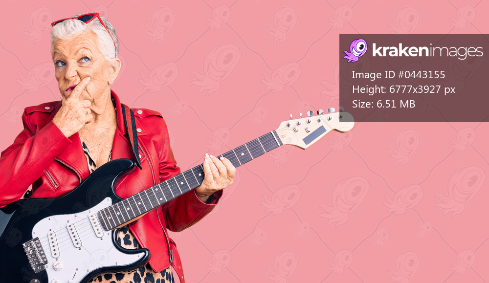 Senior beautiful woman with blue eyes and grey hair wearing a modern look playing electric guitar thinking worried about a question, concerned and nervous with hand on chin - Kraken Images