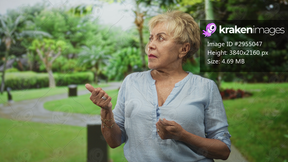 Senior hispanic woman smiling, hand to chin gesture, seated on a studio chair under soft lighting; contentment calm.