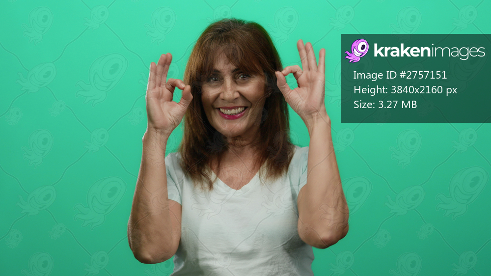 Senior hispanic woman smiling with okay gesture on green background showcasing joy and positivity in an isolated setting wearing casual white shirt