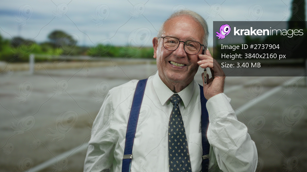 Senior man in business suit using smartphone on outdoor tennis court, displaying various emotions as he communicates during a call.