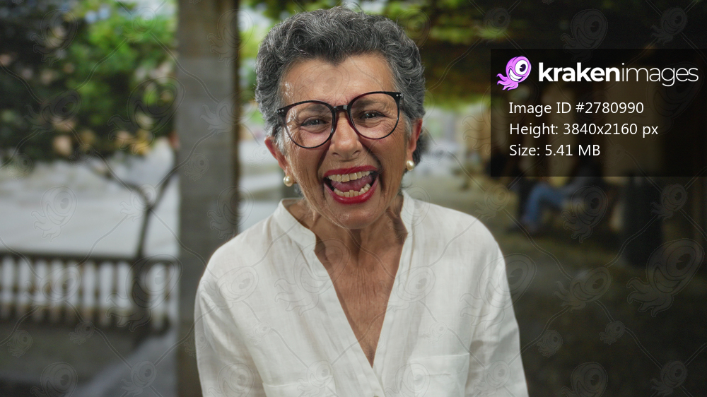 Senior woman with grey hair laughing joyfully in an old town street, creating an engaging scene with her vibrant expression outdoors in an urban setting. - Kraken Images