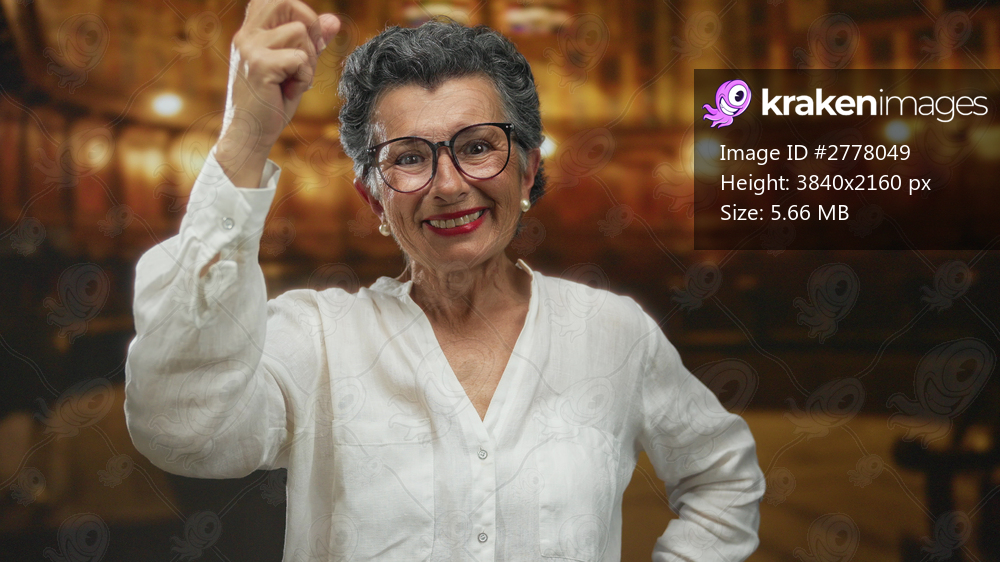 Senior woman with grey hair smiling confidently indoors at church, wearing glasses and white shirt, conveying wisdom and joy in a peaceful religious environment. - Kraken Images
