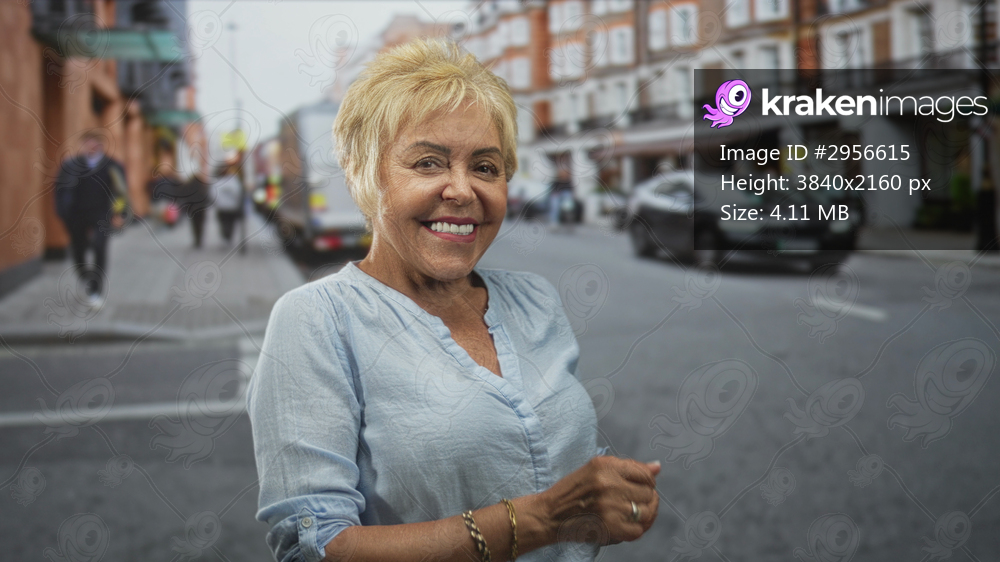 Senior woman holding rolling suitcase and passport while checking phone at busy airport terminal near gate seating and departure displays; anticipation journey independence. - Kraken Images