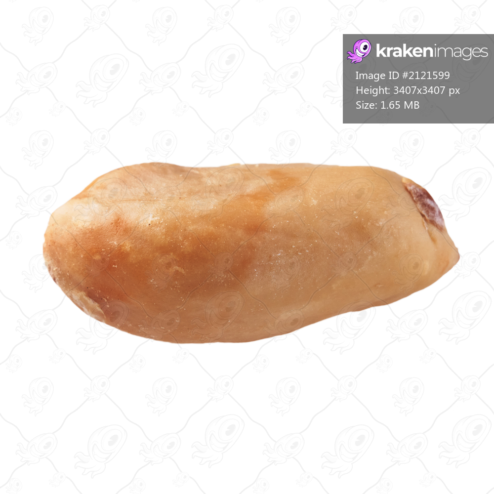 Single peeled peanut isolated on a white background
