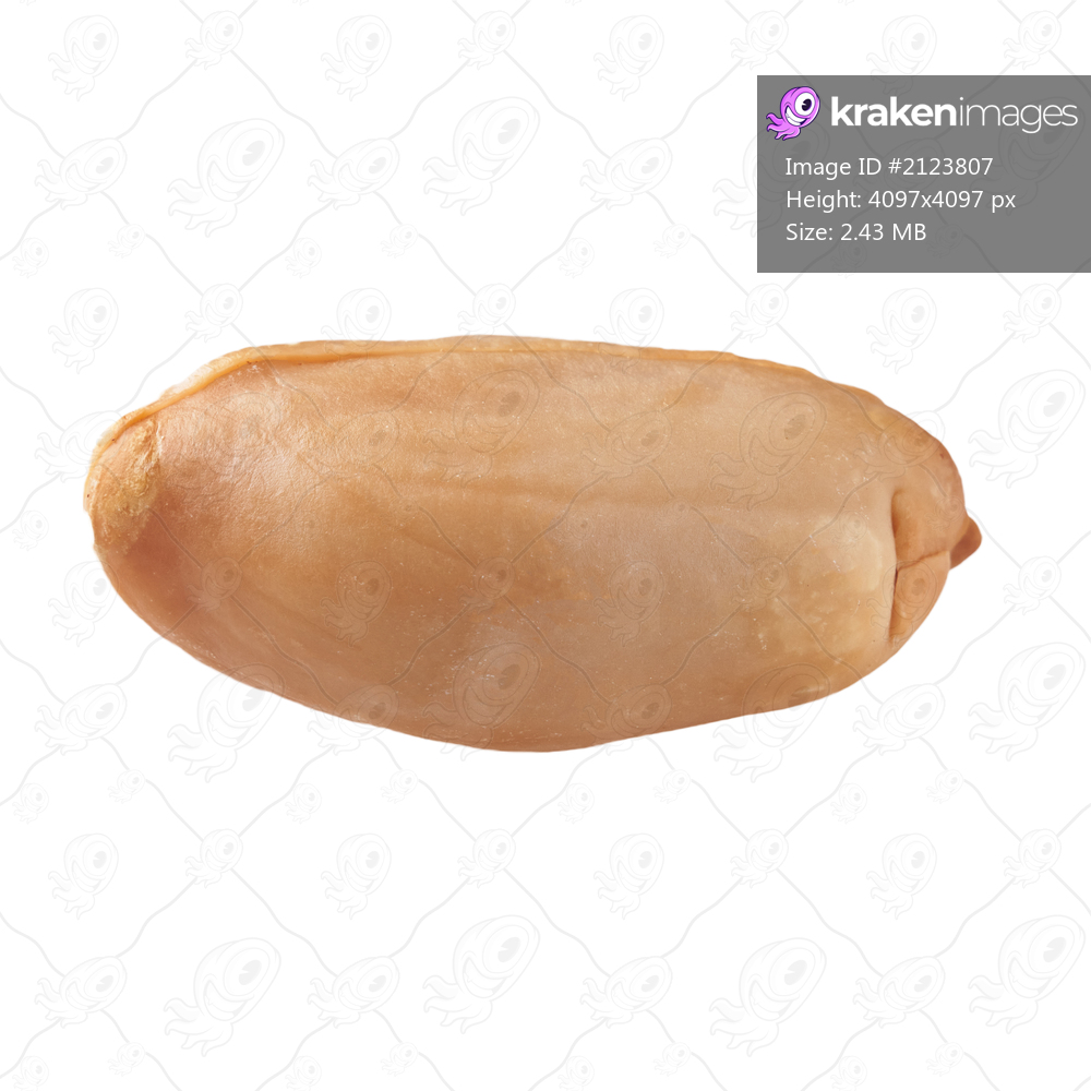 Single peeled peanut isolated on a white background
