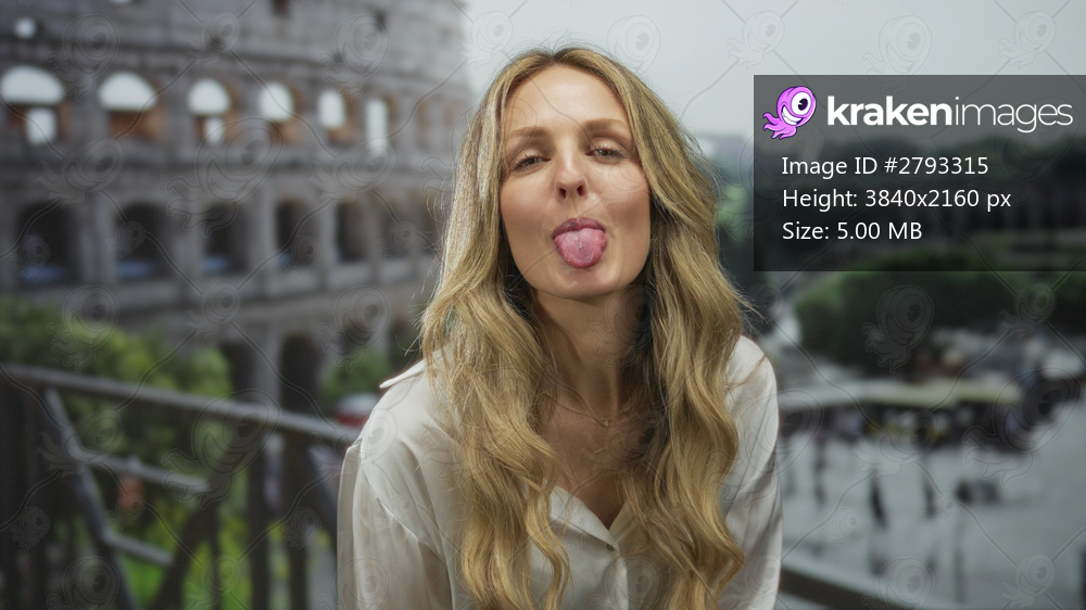 Smiling young blonde woman outdoors near roman coliseum in rome showcasing european travel and historic architecture.