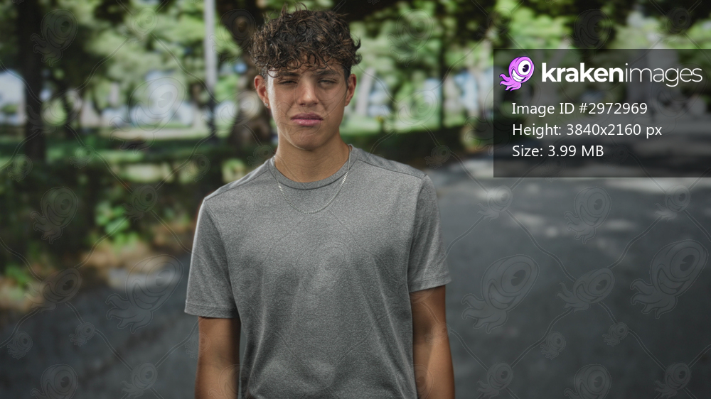Teen boy grimacing with hand held out and silver chain visible, wearing gray tshirt on a street; disgust.