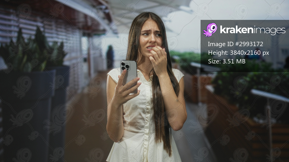 Teen girl holding smartphone with hand over mouth and tears, long hair visible on cruise ship deck; heartbreak sadness.
