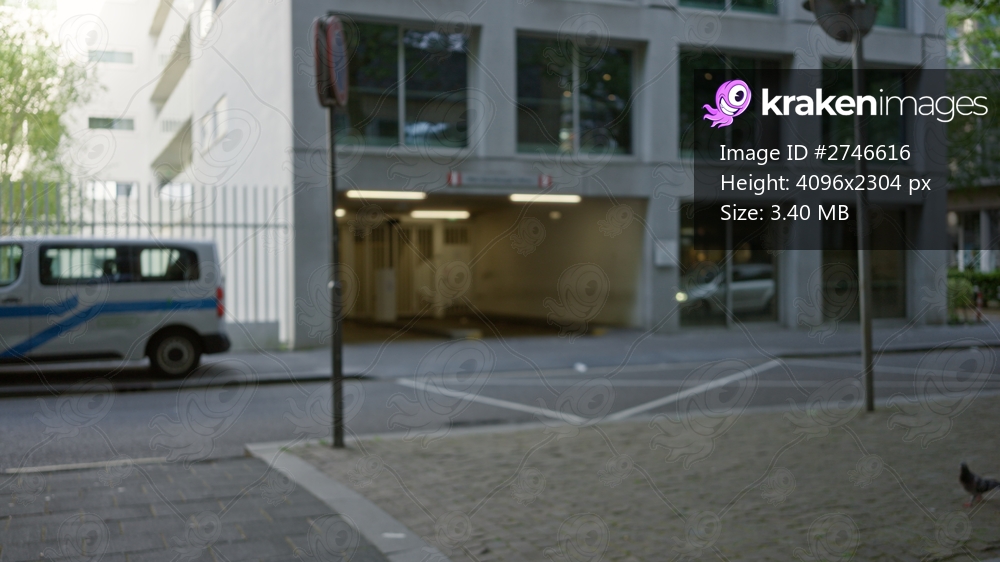 Urban scenery with van parked near modern european building captured with defocused effect creating a blurred city atmosphere in an outdoor environment. - Kraken Images