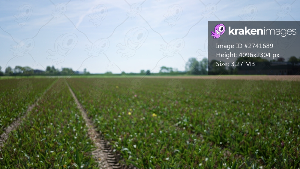 Vast tulip field in the netherlands with defocused background capturing the lush green expanse under a clear blue sky, blending natural beauty and serene landscape. - Kraken Images