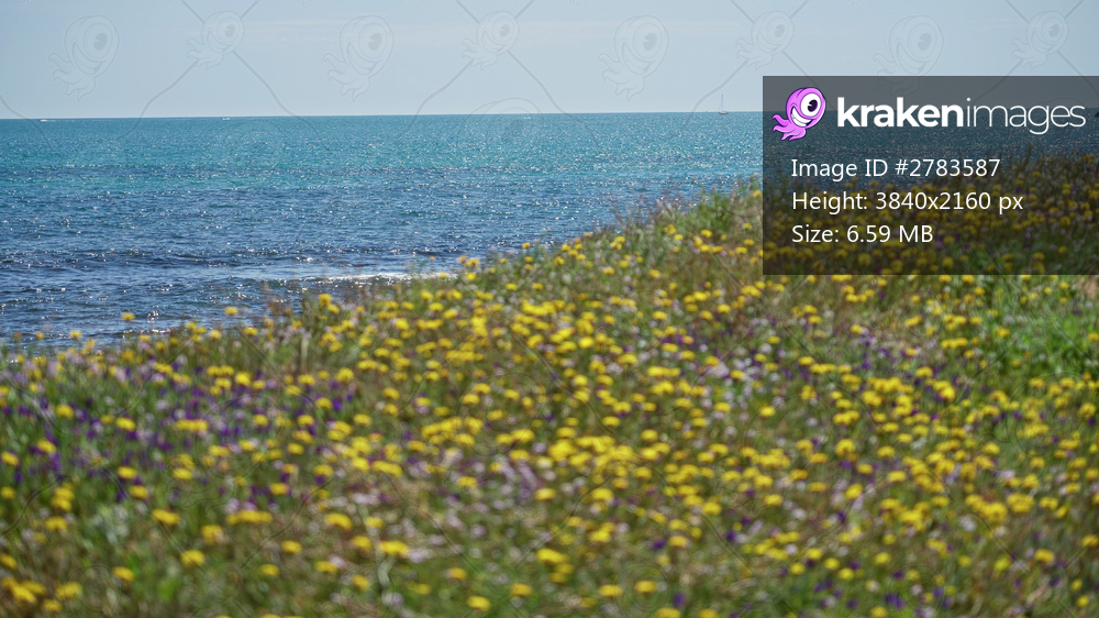 Vibrant wildflowers blooming along the sunny spanish seaside in torrevieja with sparkling turquoise waters and blue skies, capturing mediterranean natural beauty from a scenic coastal perspective - Kraken Images