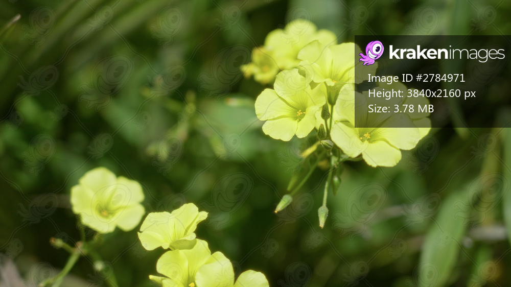 Vibrant yellow oxalis flowers bloom outdoors in sunny torrevieja, spain, showcasing their delicate petals set against a lush green backdrop of natural flora. - Kraken Images