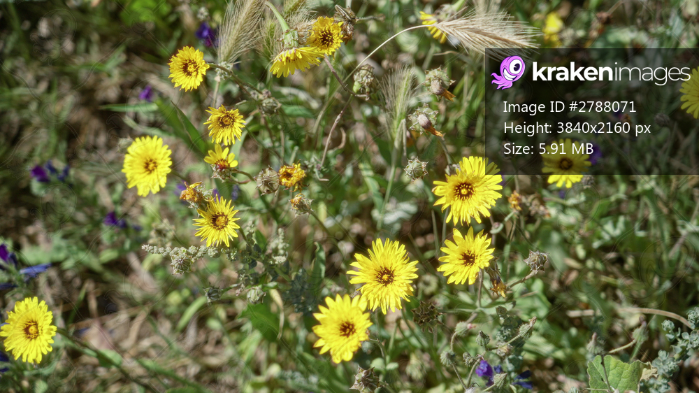 Vibrant yellow wild flowers bloom under the sunny outdoors in torrevieja, spain, surrounded by natural greenery and capturing the essence of mediterranean flora. - Kraken Images