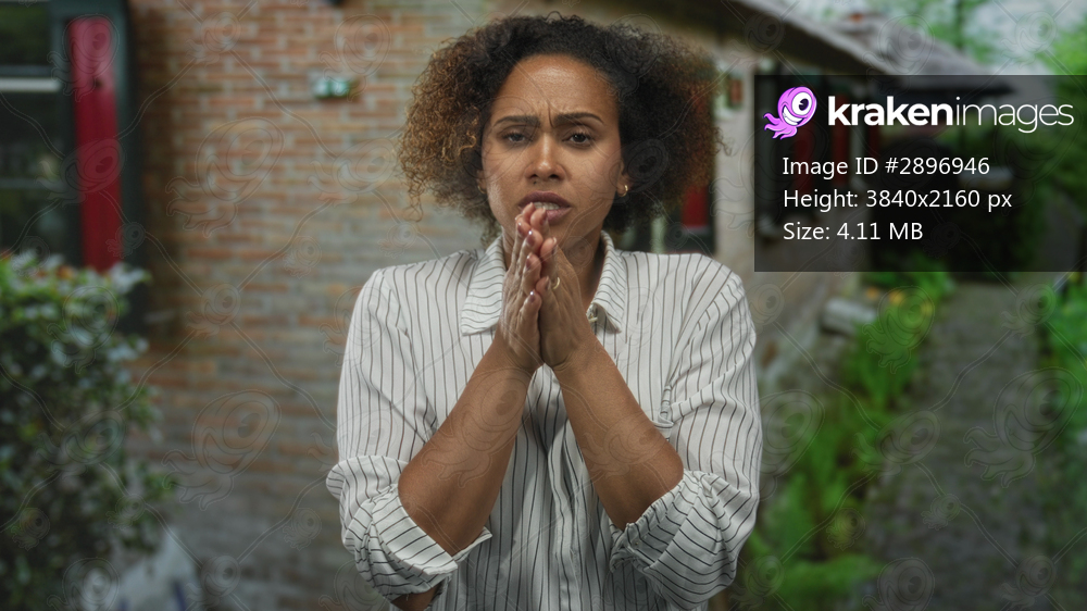 Woman with arms crossed over chest at a building entrance, rubbing hands together and grimacing as if chilled; discomfort.