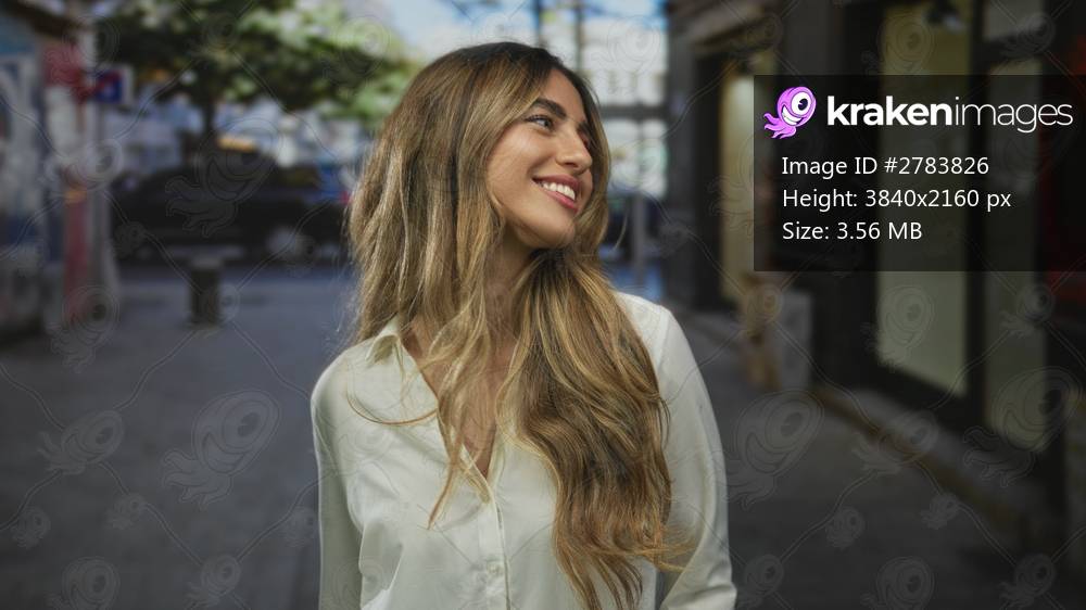 Woman blonde blows kiss with hands in city street; flirtation affection.