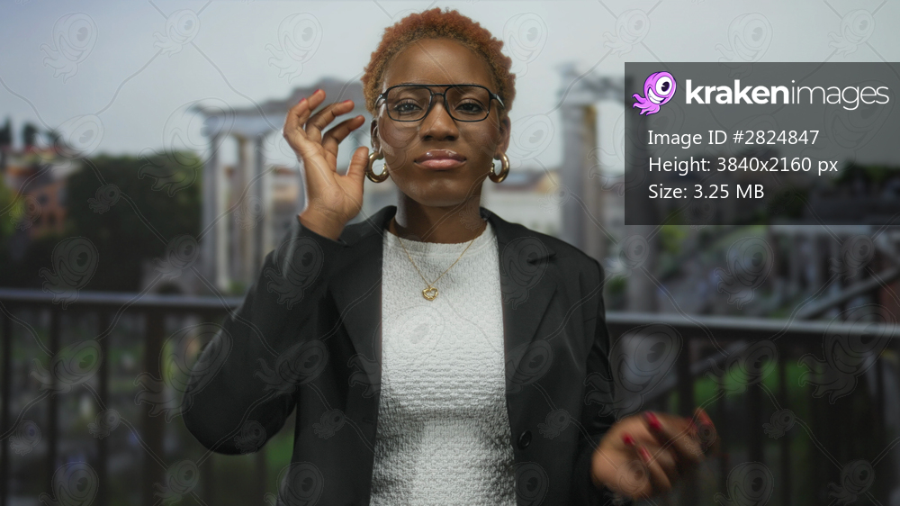 Woman brushes her hair with eyes closed on a terrace overlooking ancient building ruins in rome; calm peace serenity introspection.
