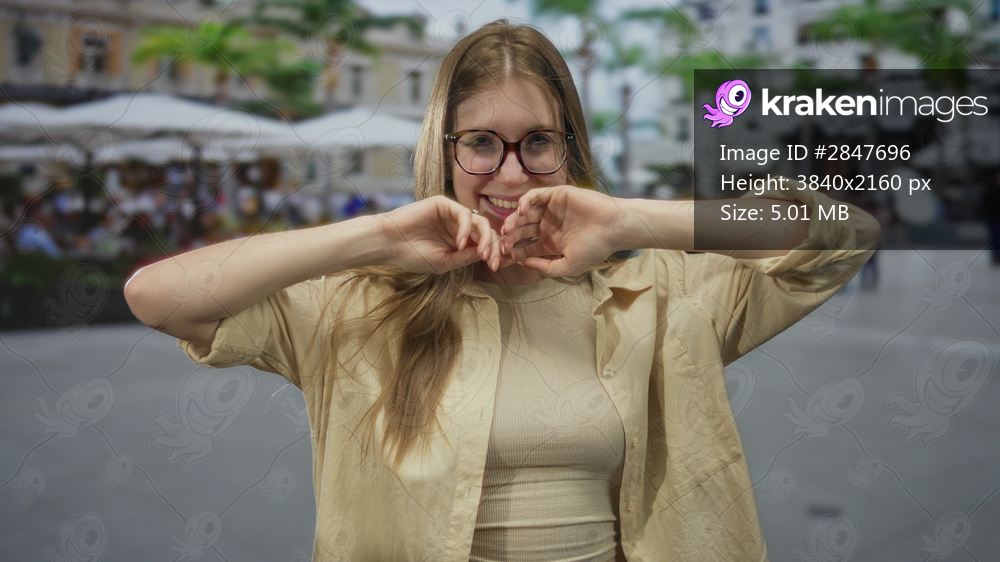 Woman with clasped hands and lifted gaze on restaurant terrace at vibrant busy outdoor cafe; hope gratitude.