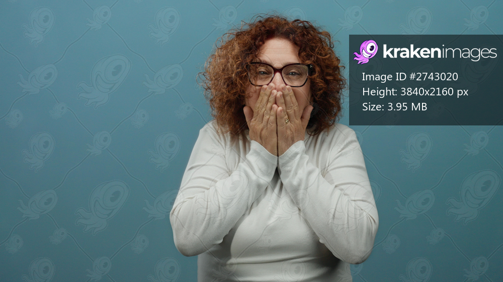 Woman with curly hair covering her eyes then smiling, wearing glasses, over a blue background, isolated middle-aged hispanic demonstrating surprise.