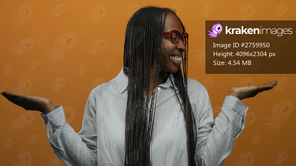 Woman with curly hair smiling broadly against an orange wall background showcasing a joyful and expressive pose.