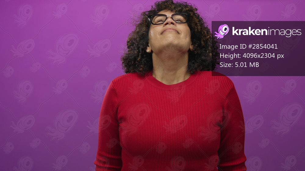 Woman with eyes closed and head tilted back in studio against vibrant purple backdrop; serenity mindfulness.