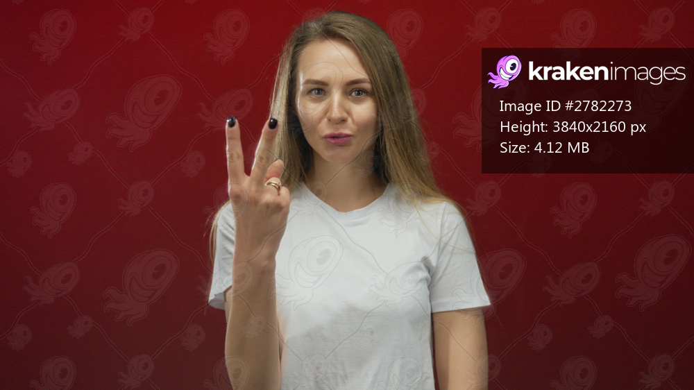 Woman gesturing happily against a vivid red background expressing joy and celebration with casual attire and relaxed over red backdrop with engaging facial expressions. - Kraken Images