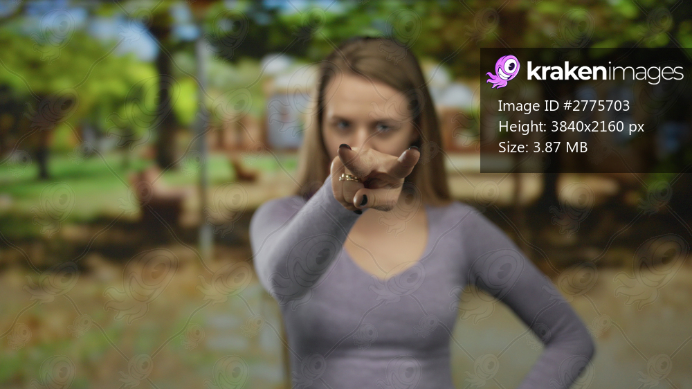 Woman gesturing in a green park setting, with focus on vigilant expressions and natural outdoor ambiance under the shade of trees.