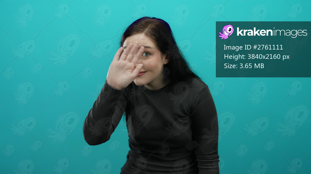 Woman gesturing on blue background, expressing various emotions in a series of frames, ideal for communication concepts.