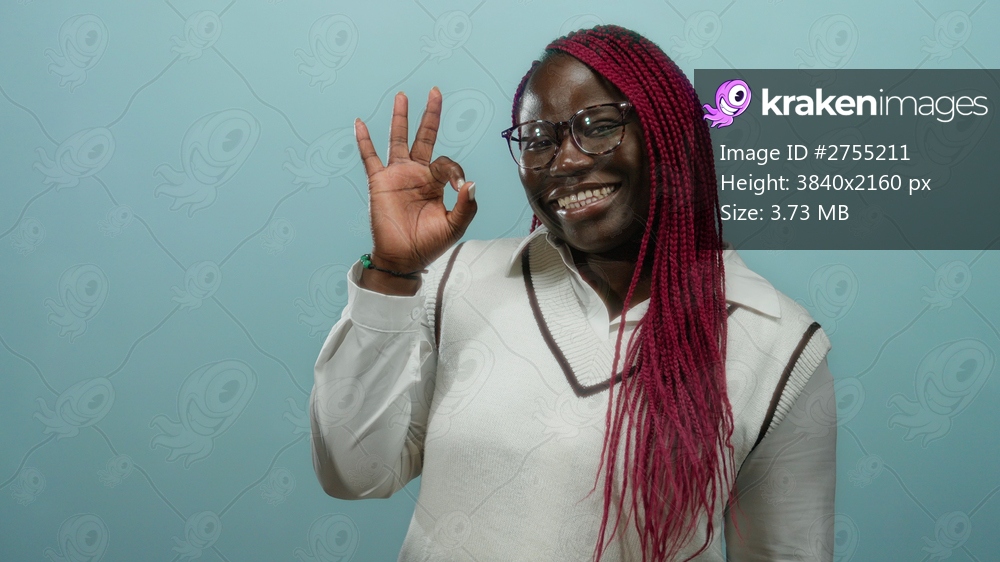 Woman with glasses and braided hair makes an ok gesture over an isolated blue background smiling confidently.