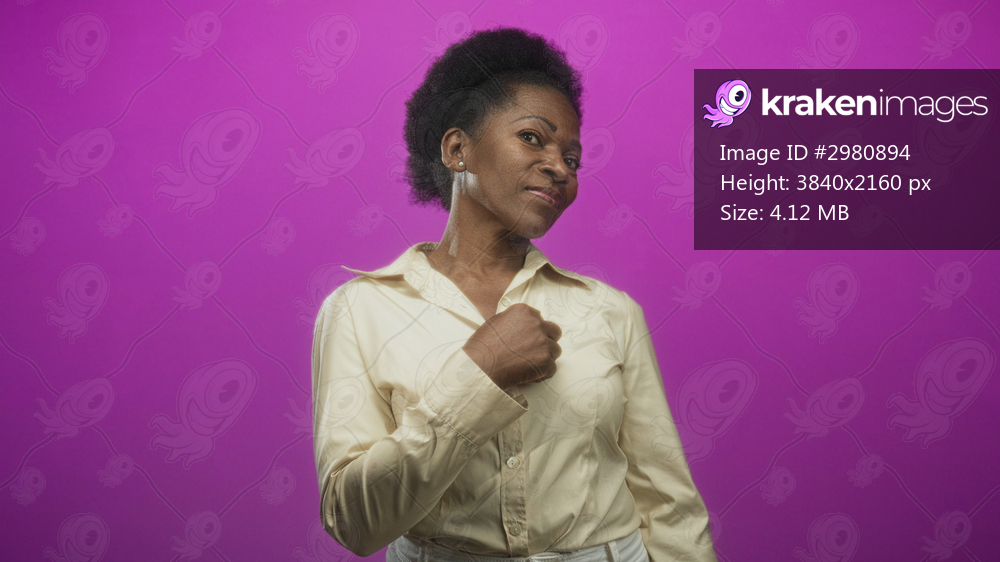 Woman with hand on chest, slight fist over heart, tilting head and smiling while gazing upward in studio setting; pride resilience.