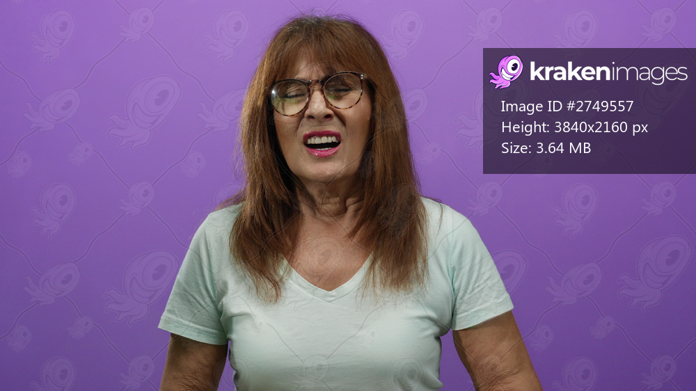 Woman holding chest expressing discomfort against purple wall, illustrating emotion and health concern.