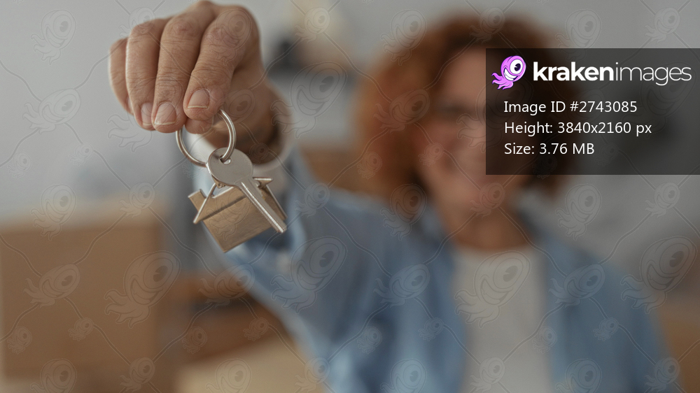 Woman holding keys in living room symbolizes new home ownership with packed boxes suggesting relocation and beginning, indoor setting hints at fresh beginnings and personal achievement. - Kraken Images