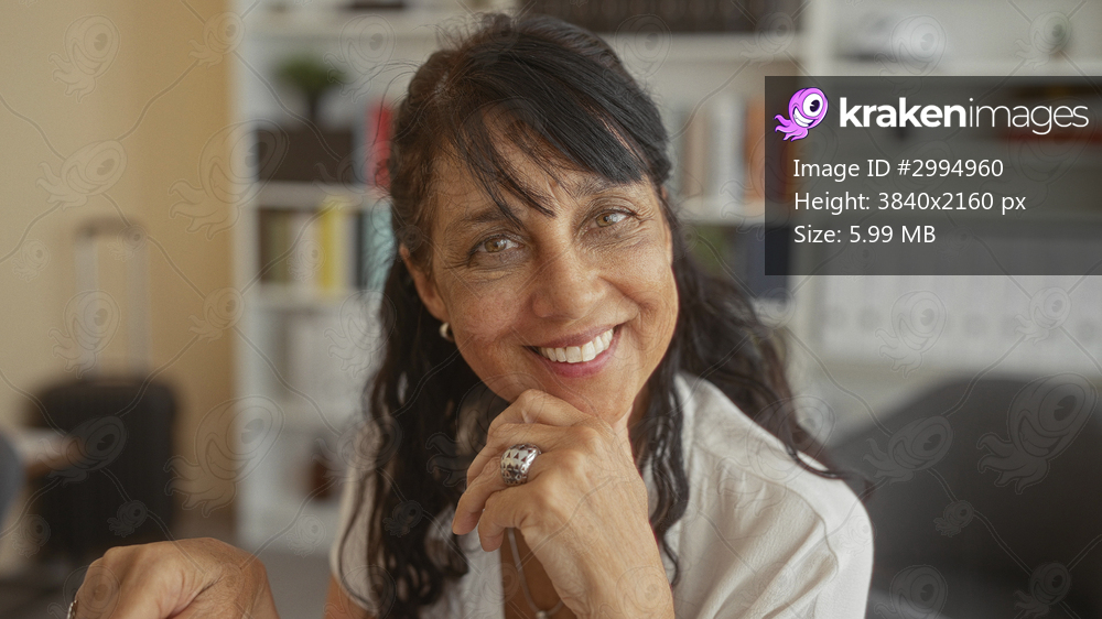 Woman holding purple glasses and touching ear, wearing silver ring and cuff, seated at a desk amid bookshelves and binders in a building office; calm thoughtful moment. - Kraken Images
