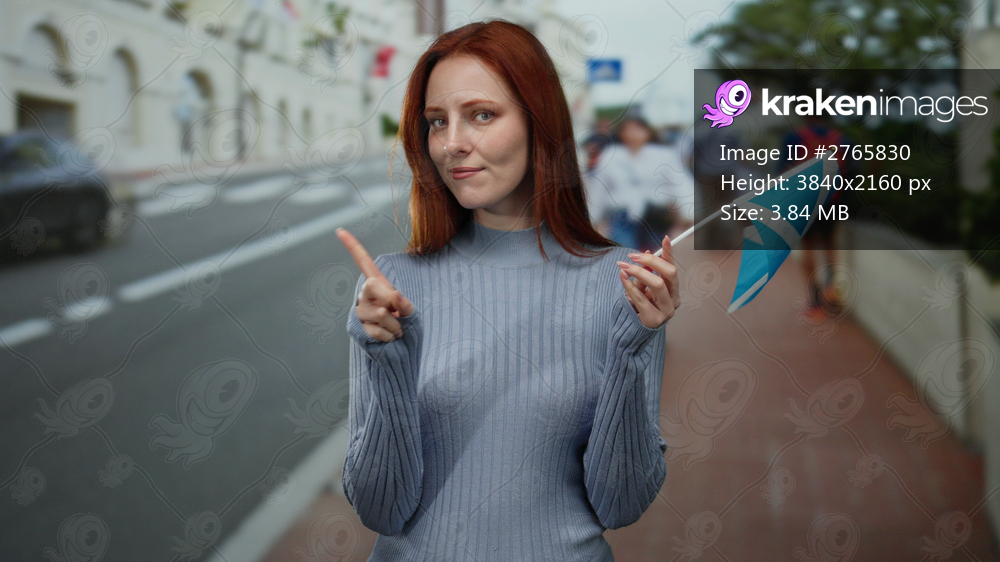Woman holding scottish flag on city street while gesturing displeasure, showcasing a vibrant casual outdoor setting with focus on redheaded adult female. - Kraken Images